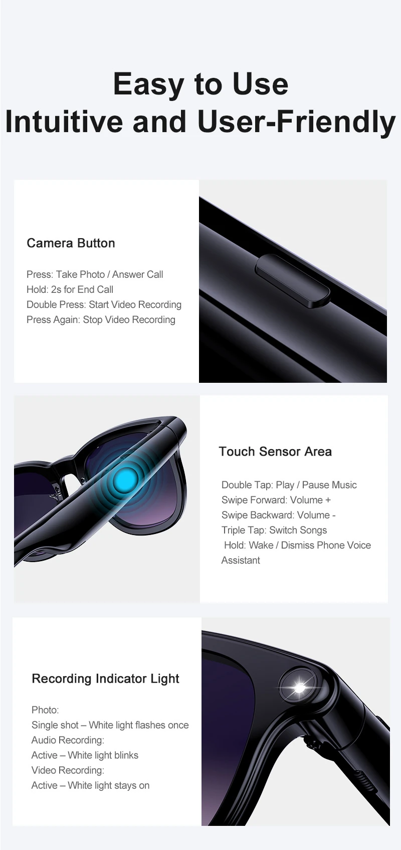A2 Trending AI-Powered Camera with Photo and Video Features, Voice Recording, Music Playback, and Gradient Design: Smart Glasses