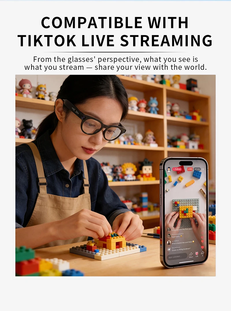 CY05 Smart Glasses: HD Live Streaming, Video Recording, Photography, Real-Time Translation, and AI Conversation