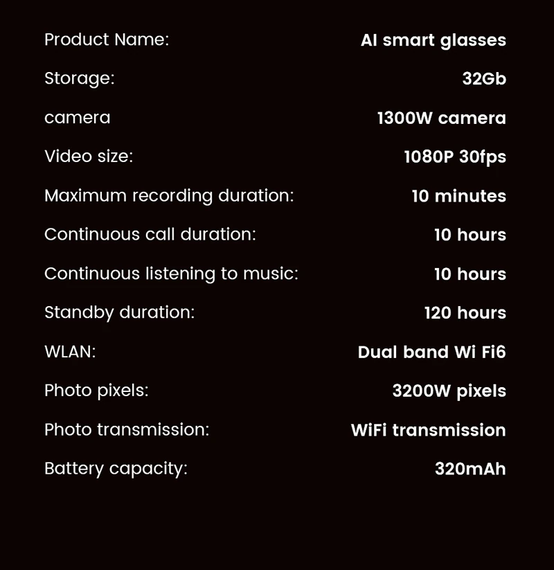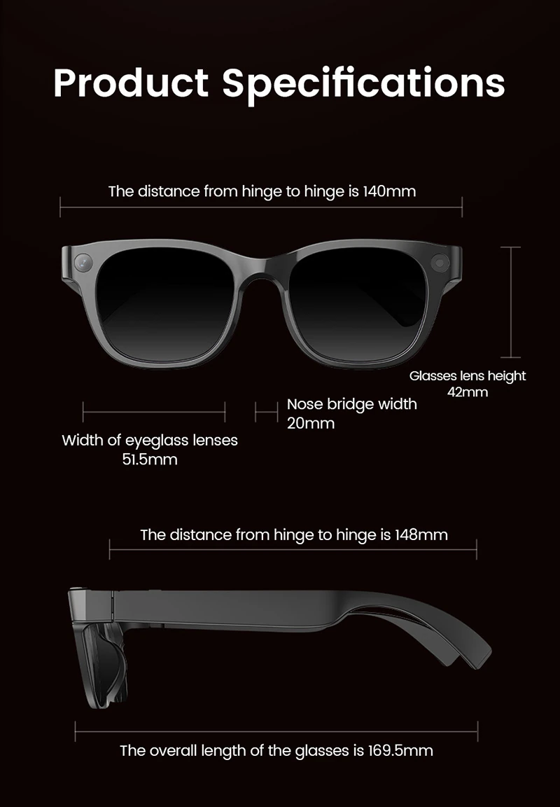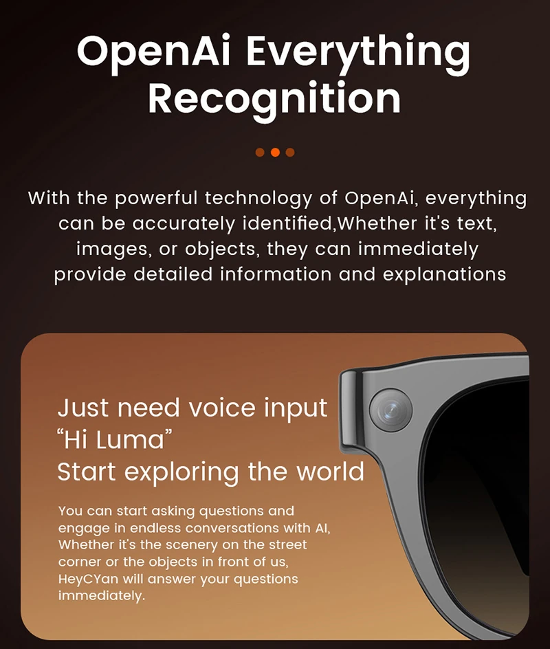 AI Analysis L802: High-Tech Camera, Photo and Video Recognition, Recording, Bluetooth Music, Smart Glasses