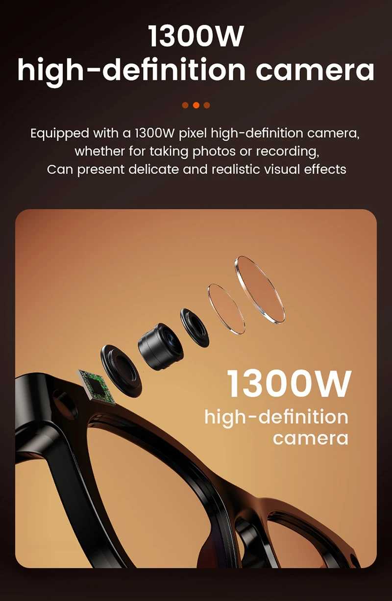 E06S Smart Glasses: 13-Megapixel Camera, Portrait and Landscape Mode, Photo and Video Recording, Live Streaming, AI-Powered Glasses