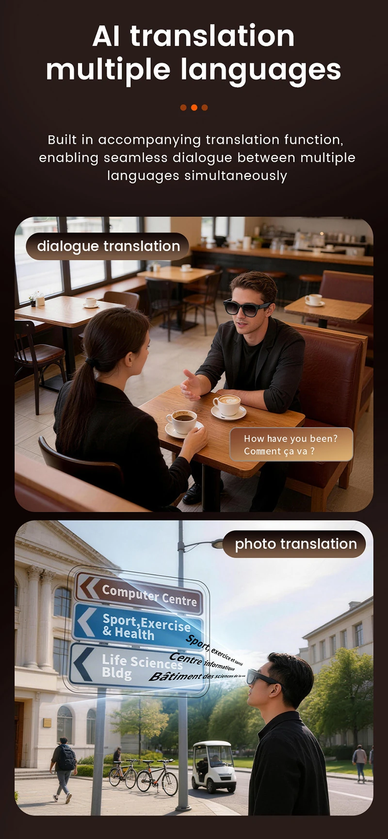 Huaqiangbei AI Smart Translation Bluetooth Glasses for Cycling and Driving with Comfortable Wear and Sun Protection