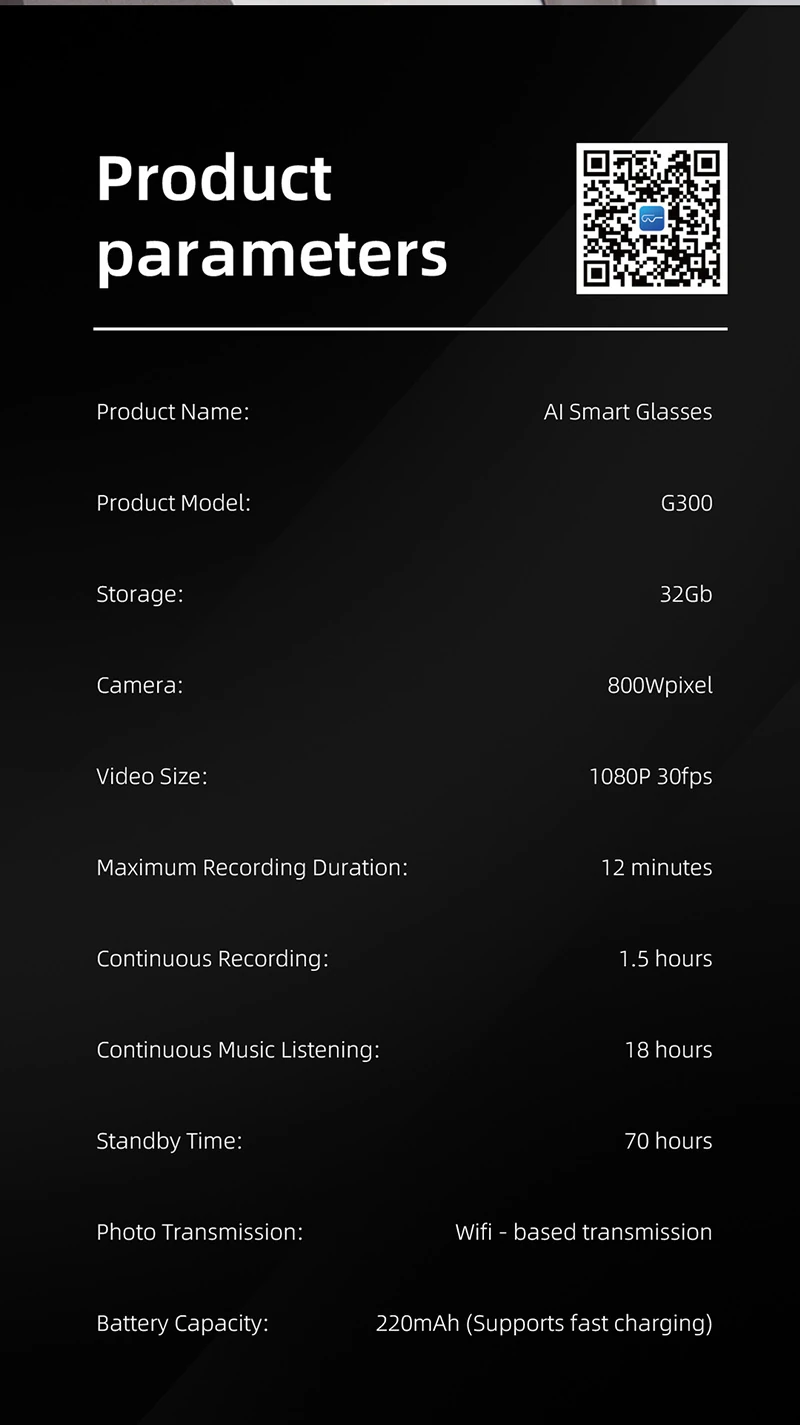 G300 Smart Glasses: 8MP Video Recording, Simultaneous Interpretation, Intelligent Recognition, Meeting Minutes, AI Smart Glasses