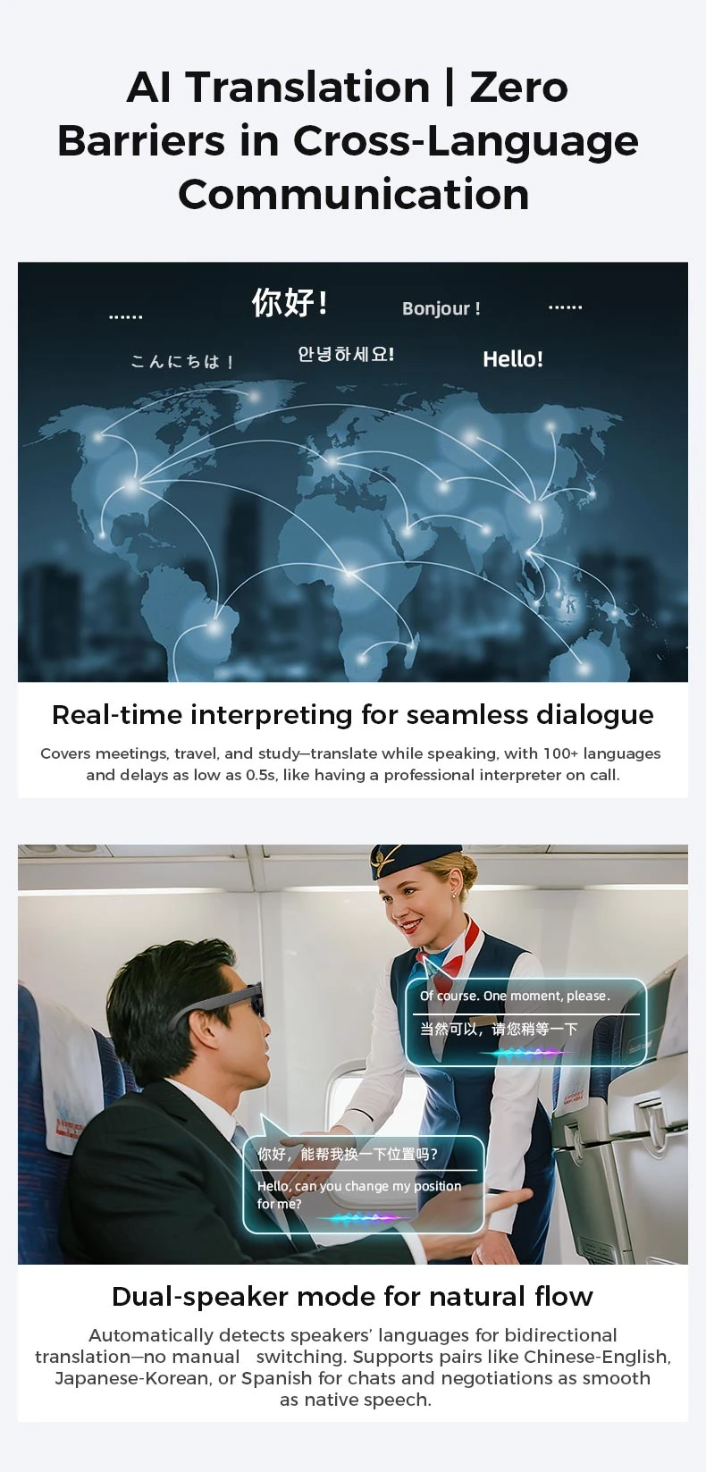 AI Smart Translation Bluetooth Glasses 12MP HD Photography Anti-Shake Video Recording Live Streaming Long Battery Life