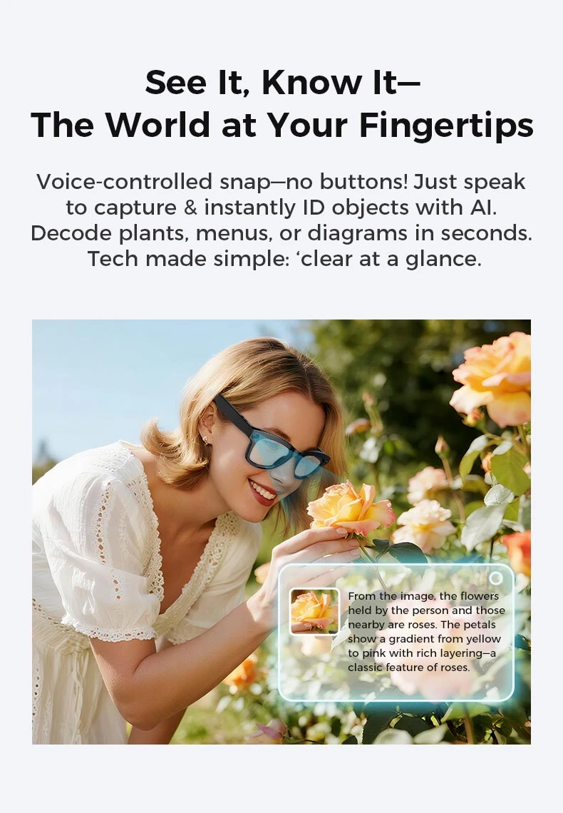 New G1 AI-powered Smart Glasses: Cutting-edge camera for photos, videos, and audio recording; Bluetooth for music playback
