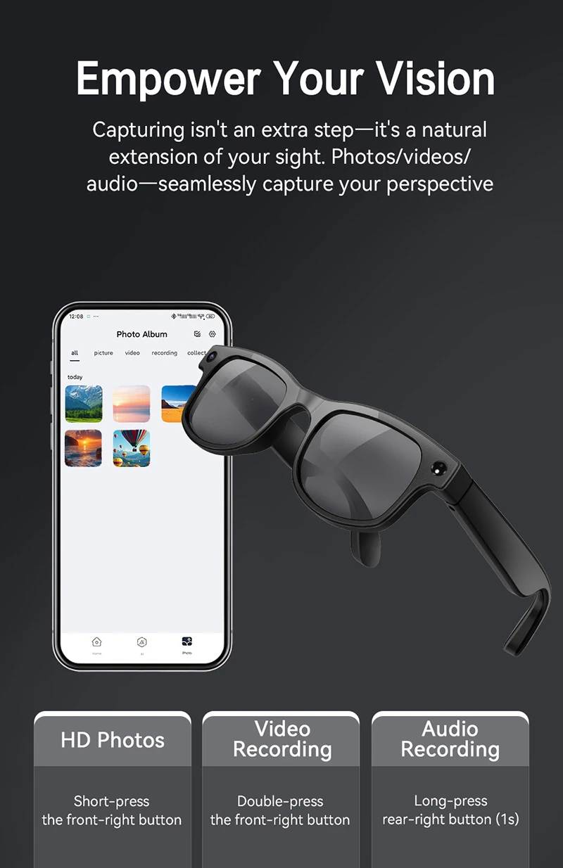 New G1 AI-powered Smart Glasses: Cutting-edge camera for photos, videos, and audio recording; Bluetooth for music playback