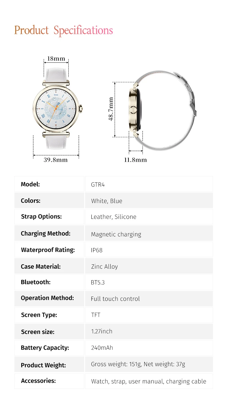 GTR4 Women's Smart Watch Heart rate monitor Runmefit watch