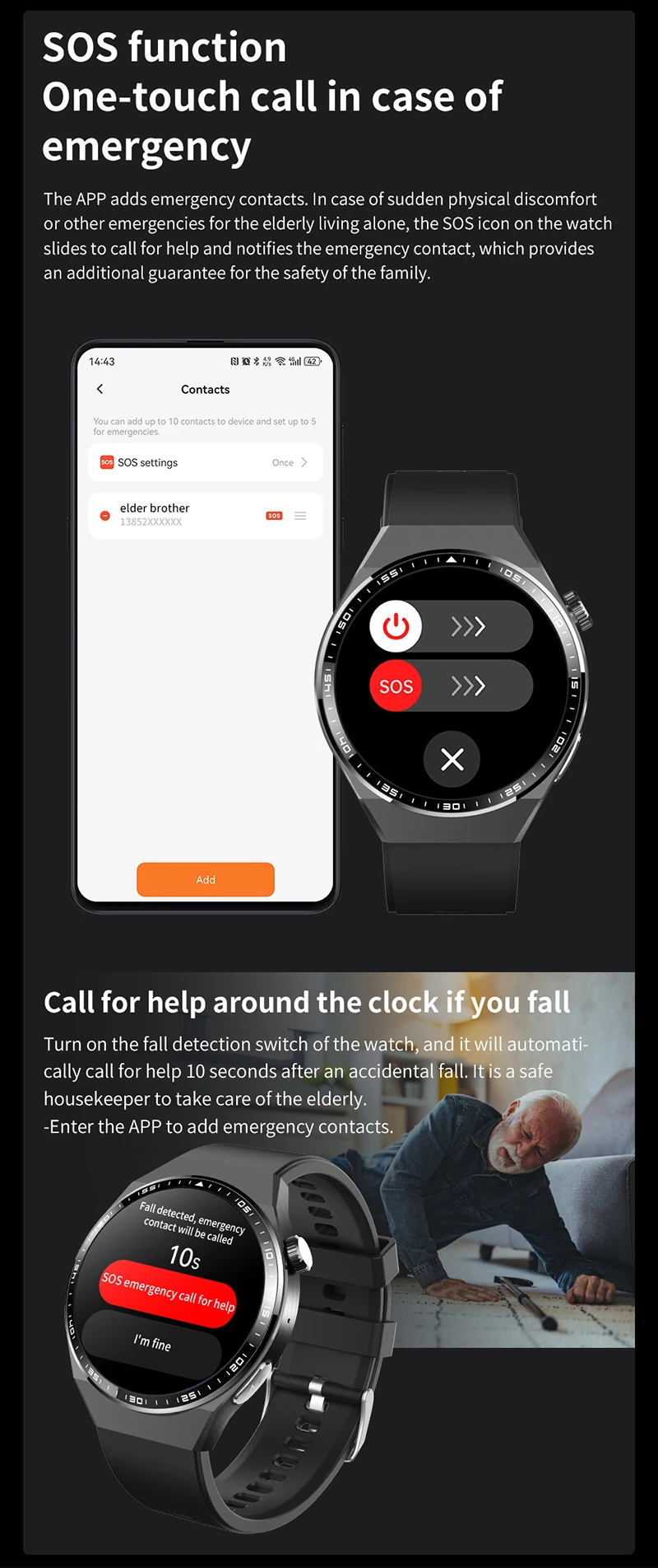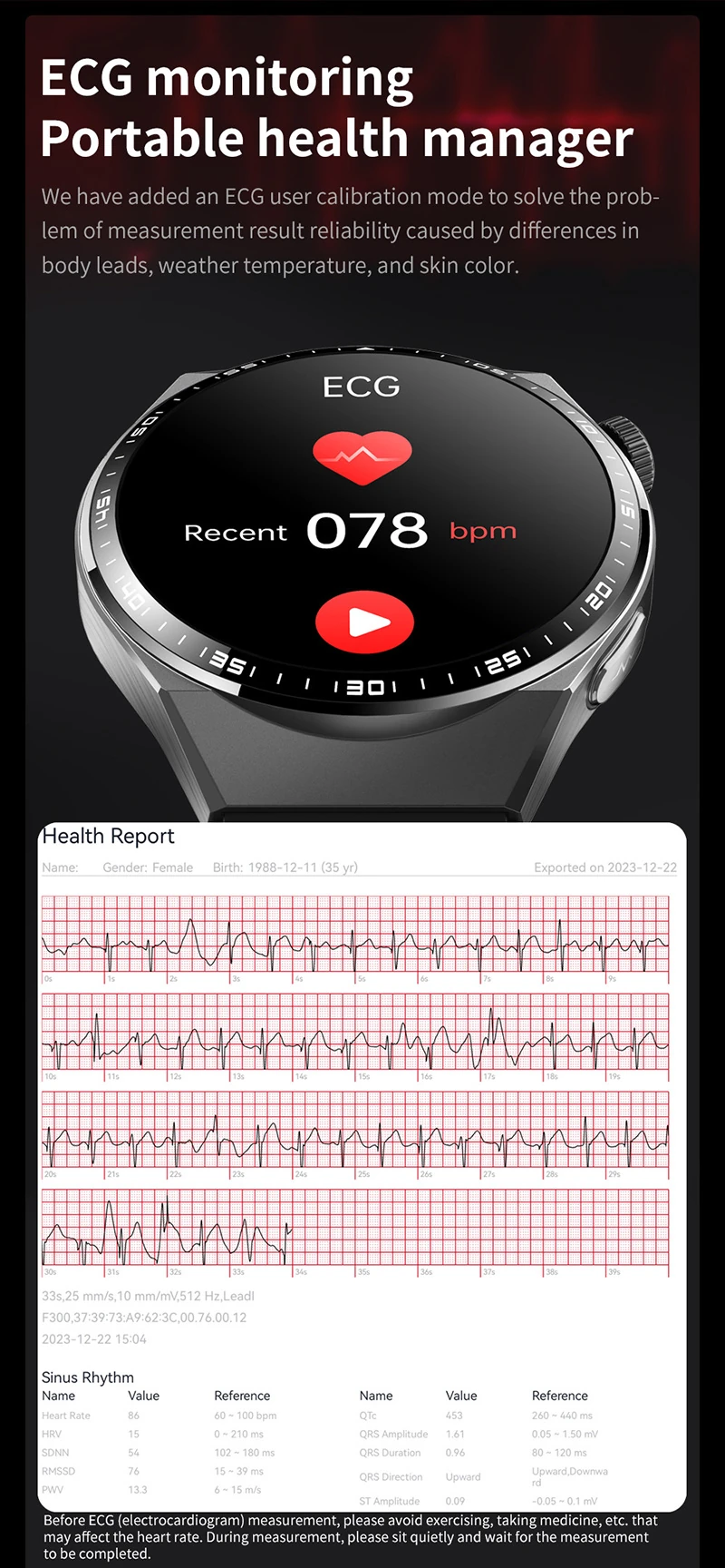 F300 Smart Watch SOS heart rate blood oxygen ECG monitoring