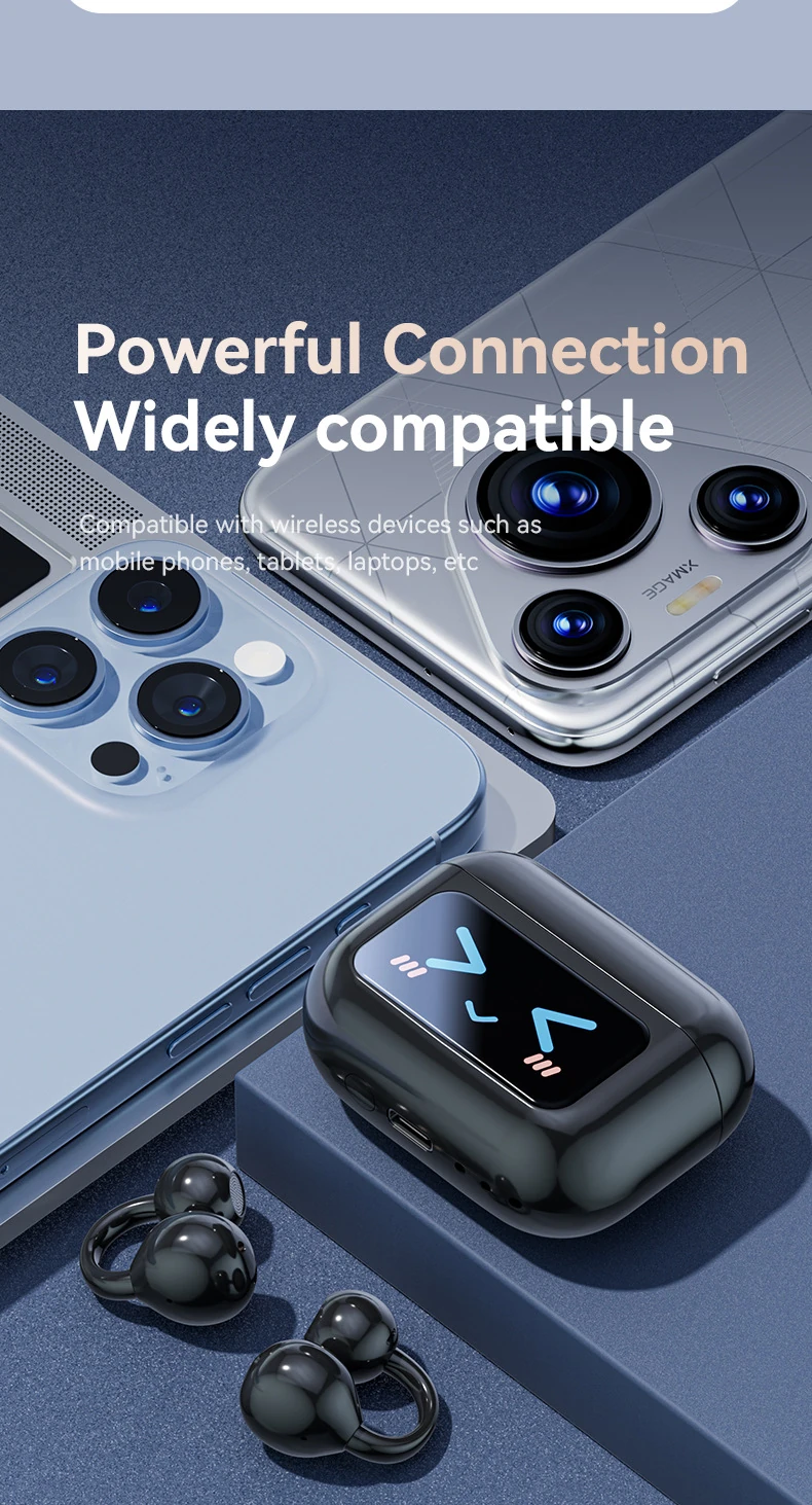 BS02 Clip-on Bluetooth Headphones: Bone Conduction, In-Ear-Free, High-Quality Sound, Noise Cancellation, Ultra-Long Battery Life