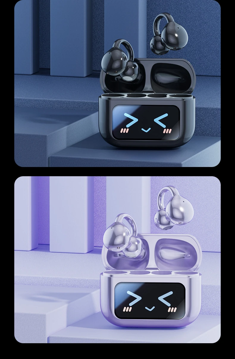 BS01 Digital Display Touchscreen Earhook Bluetooth Headphones with Bone Conduction and Extra-Long Battery Life for Sports