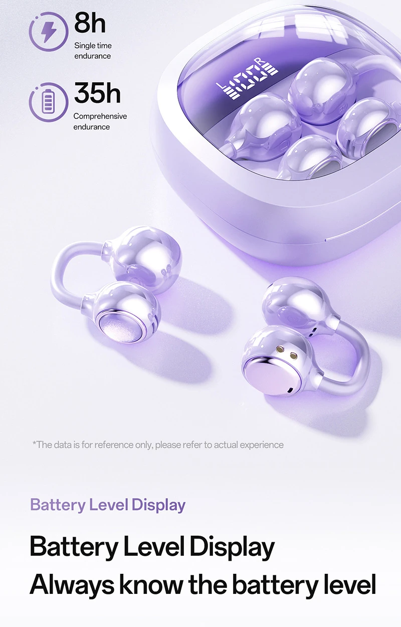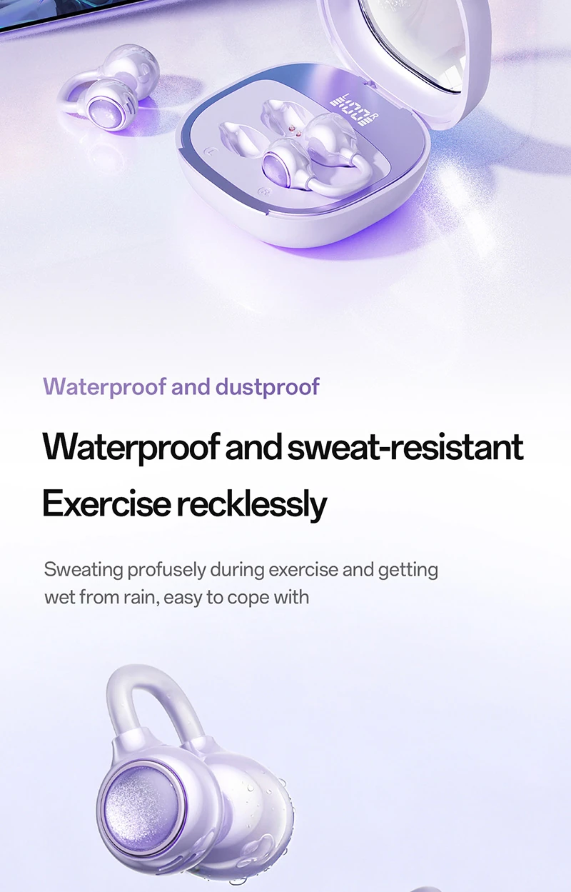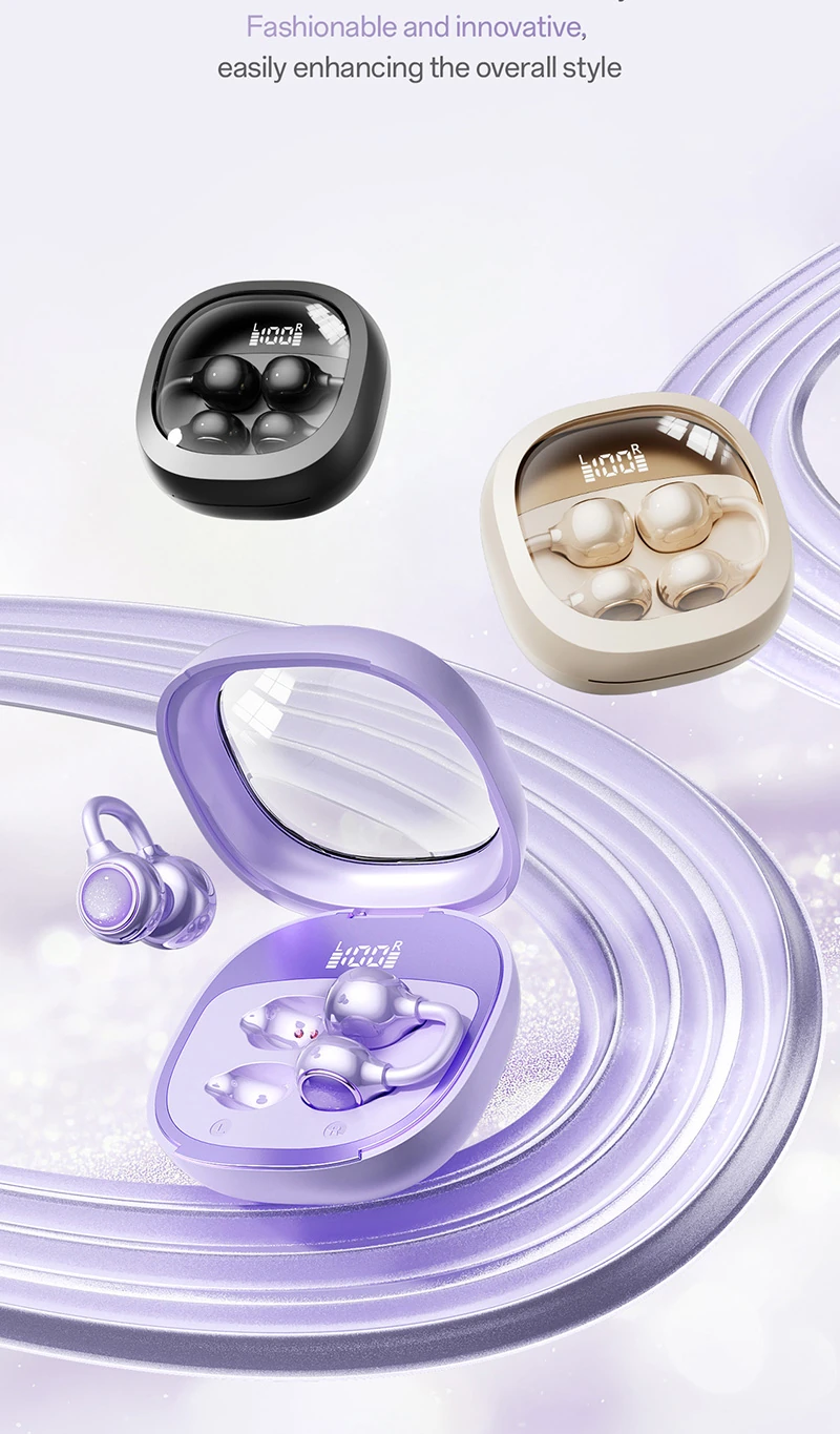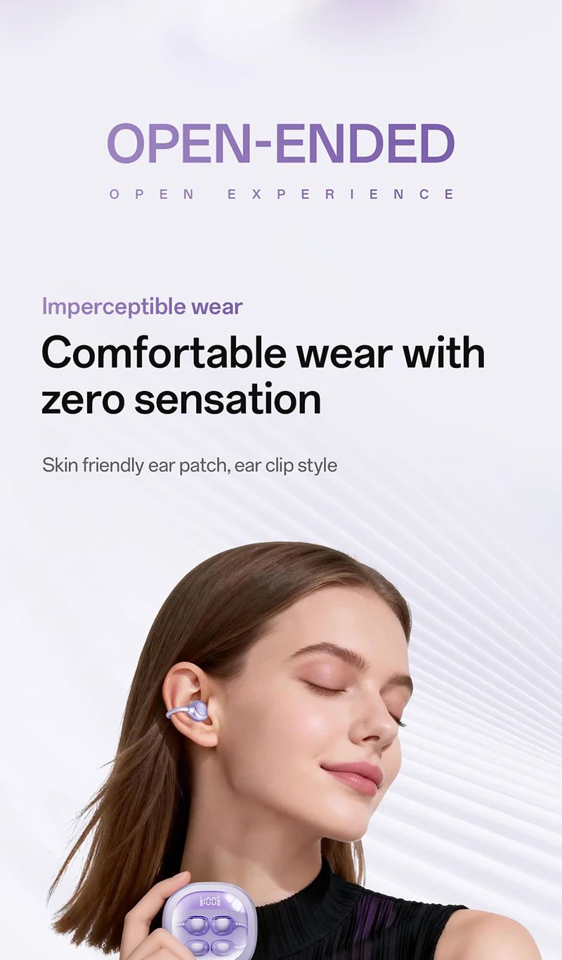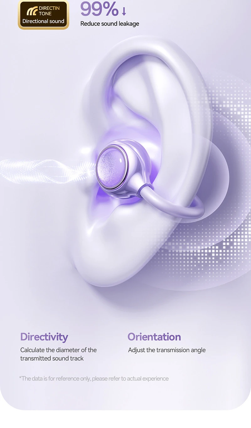 BS02 Clip-on Bluetooth Headphones: Bone Conduction, In-Ear-Free, High-Quality Sound, Noise Cancellation, Ultra-Long Battery Life
