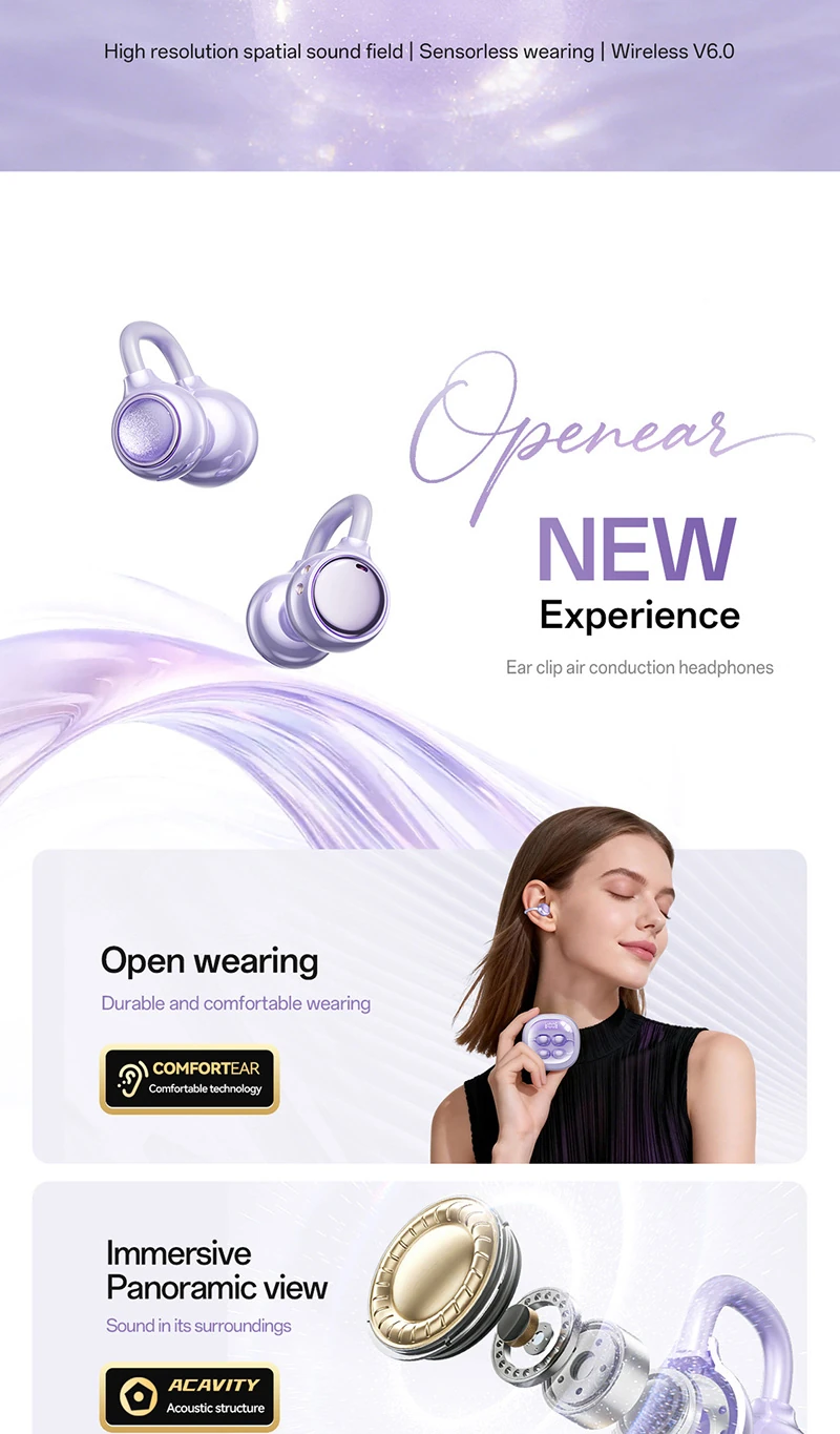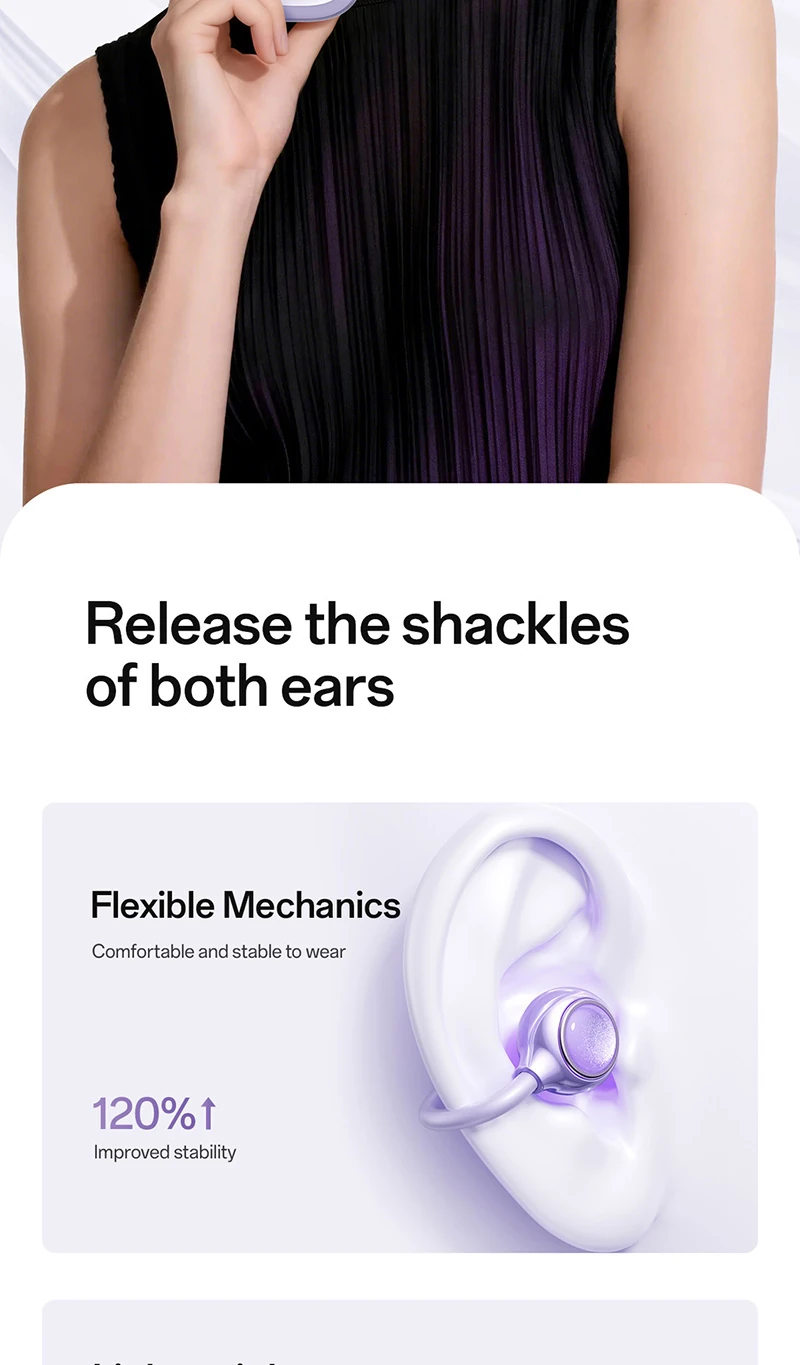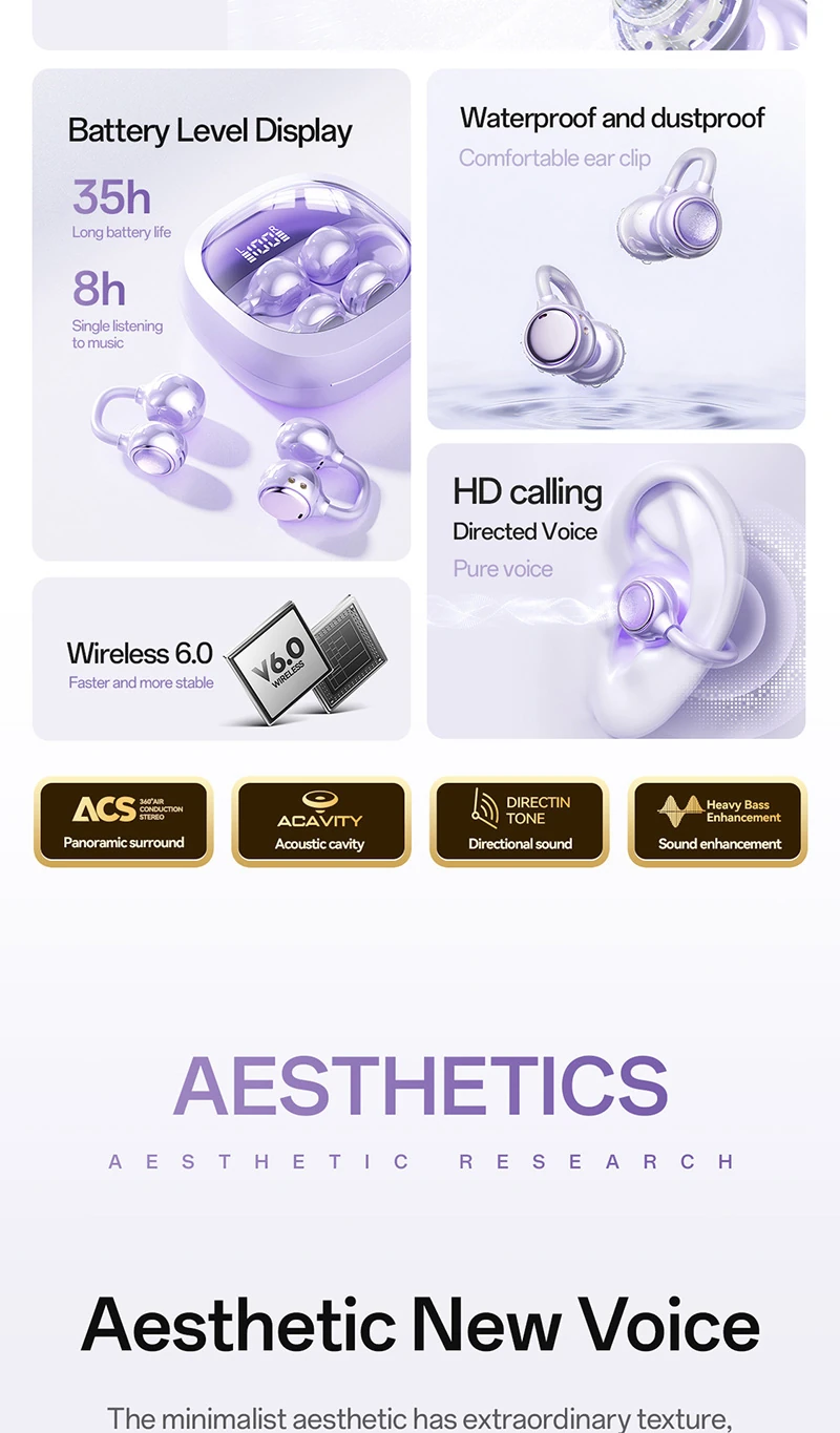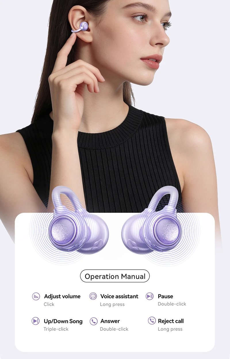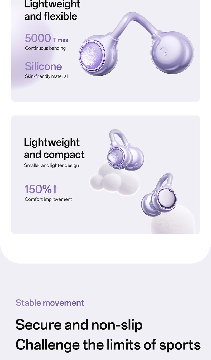 BS02 Clip-on Bluetooth Headphones: Bone Conduction, In-Ear-Free, High-Quality Sound, Noise Cancellation, Ultra-Long Battery Life