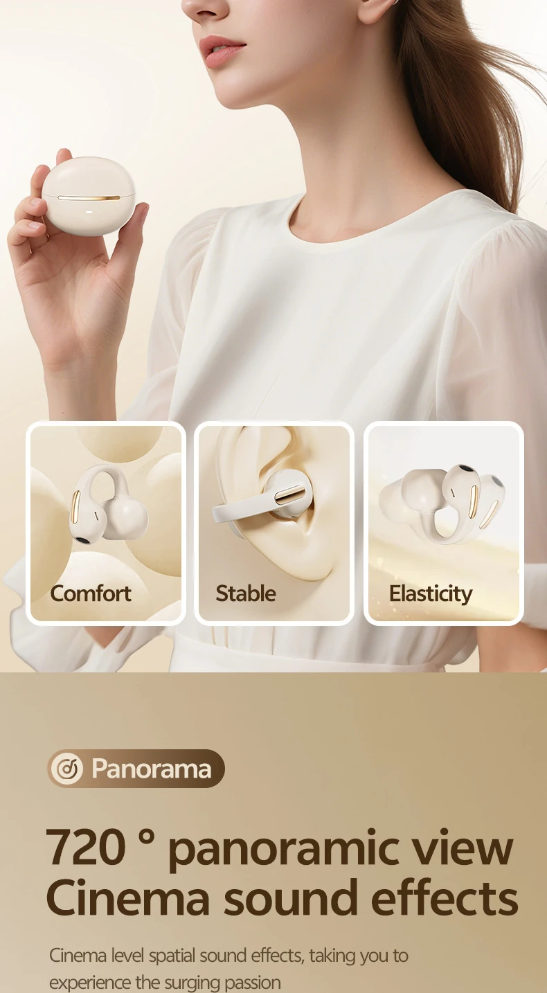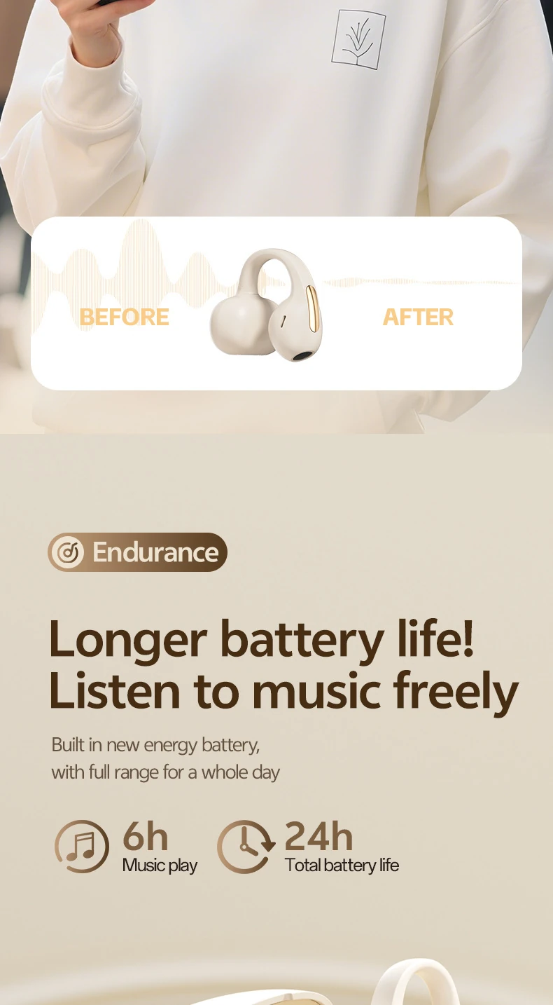 BS02 Clip-on Bluetooth Headphones: Bone Conduction, In-Ear-Free, High-Quality Sound, Noise Cancellation, Ultra-Long Battery Life