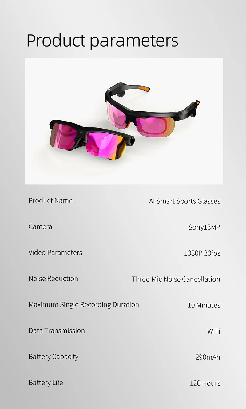 Q01 Cross-border Smart Glasses: 8-megapixel Outdoor Sports Anti-shake Photography with Translation and Wi-Fi Transmission