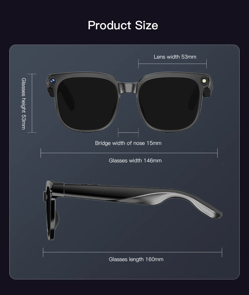 AI Analysis L802: High-Tech Camera, Photo and Video Recognition, Recording, Bluetooth Music, Smart Glasses