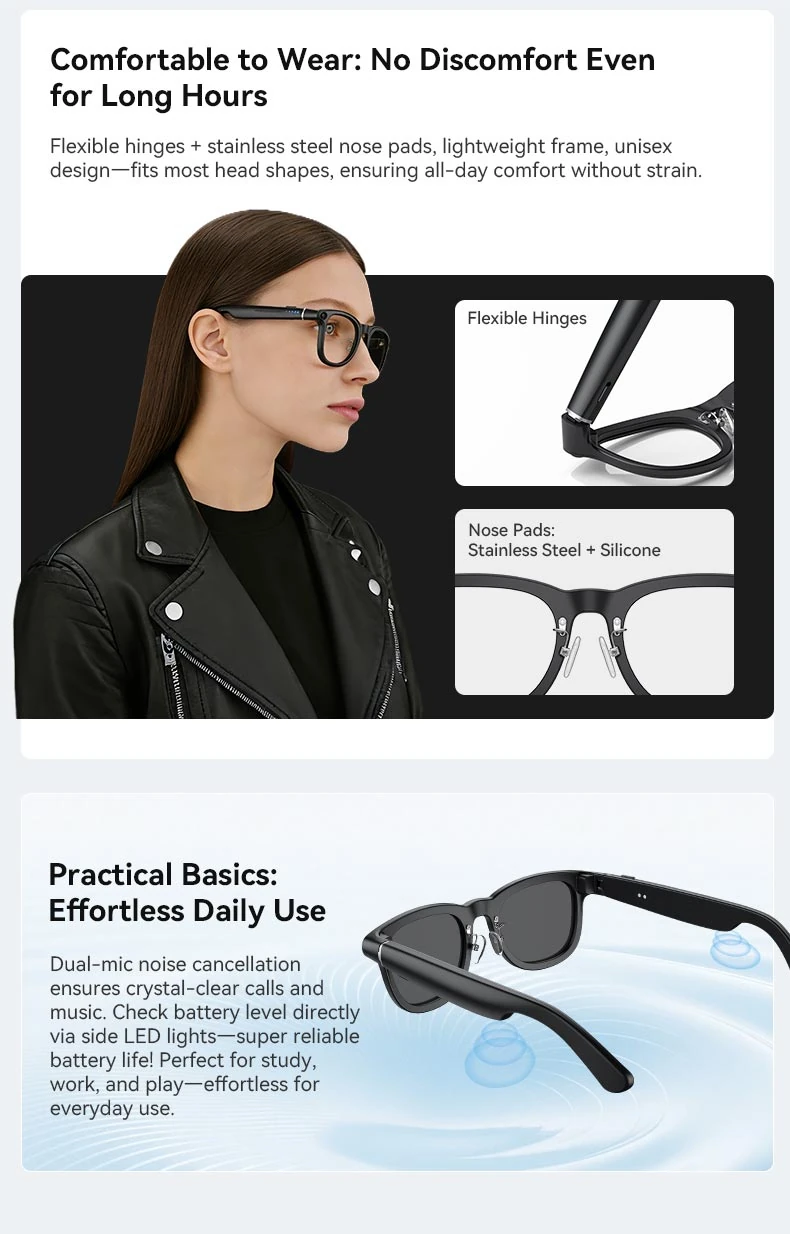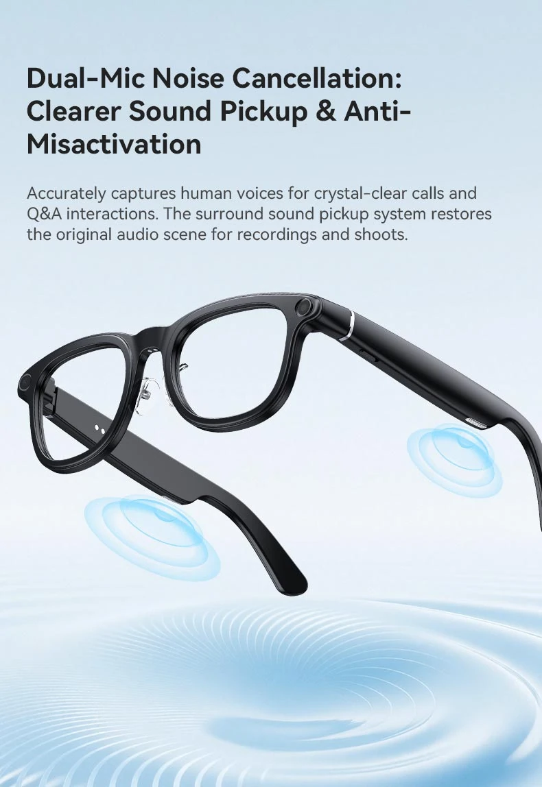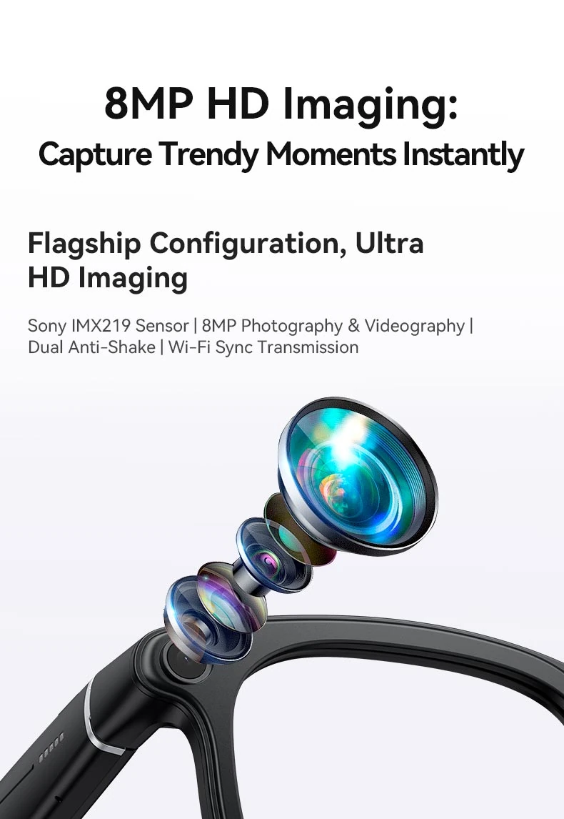 M01 Smart Glasses with AI Real-Time Translation, Music Streaming, Calls, Navigation, Photography, and Video Recording; 8MP HD Camera