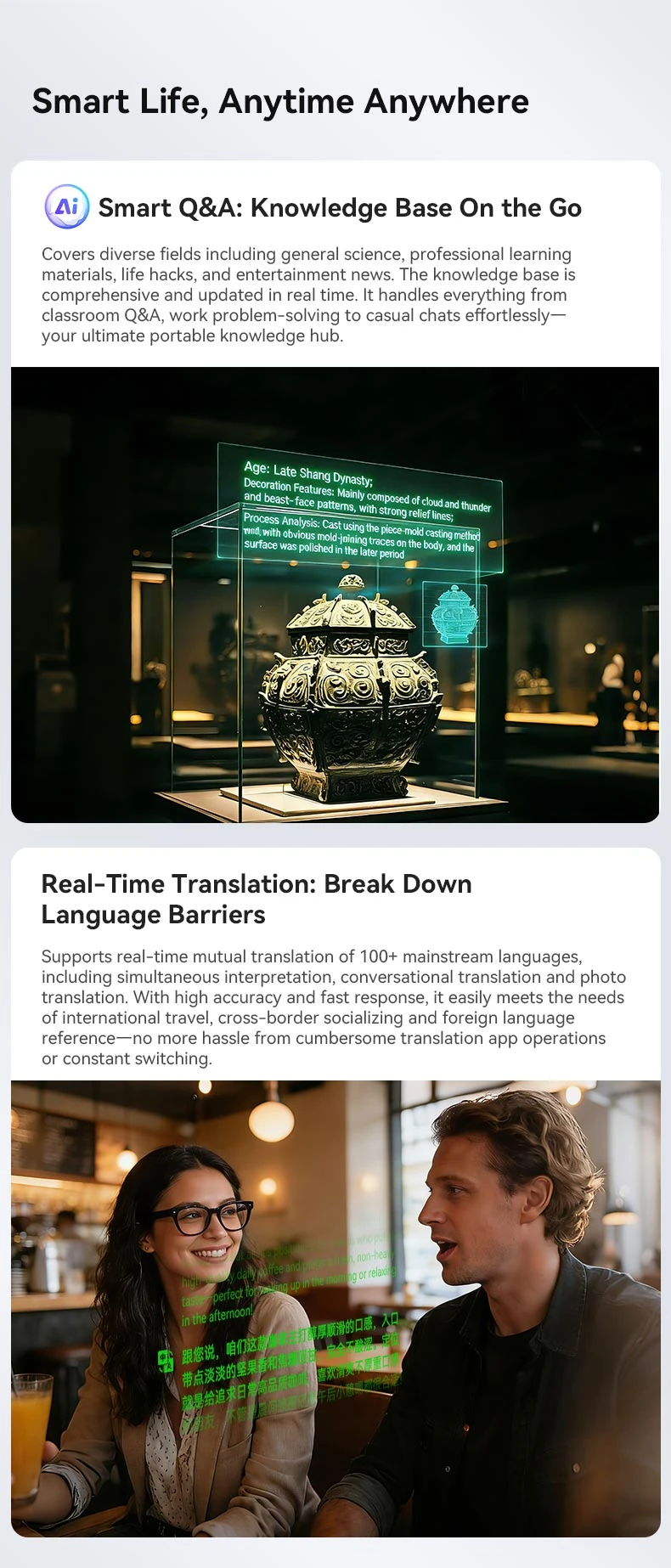 AI Smart Translation Bluetooth Glasses 12MP HD Photography Anti-Shake Video Recording Live Streaming Long Battery Life