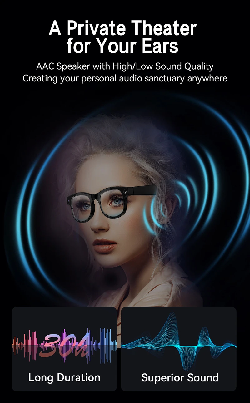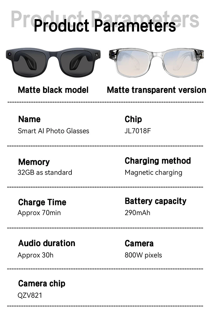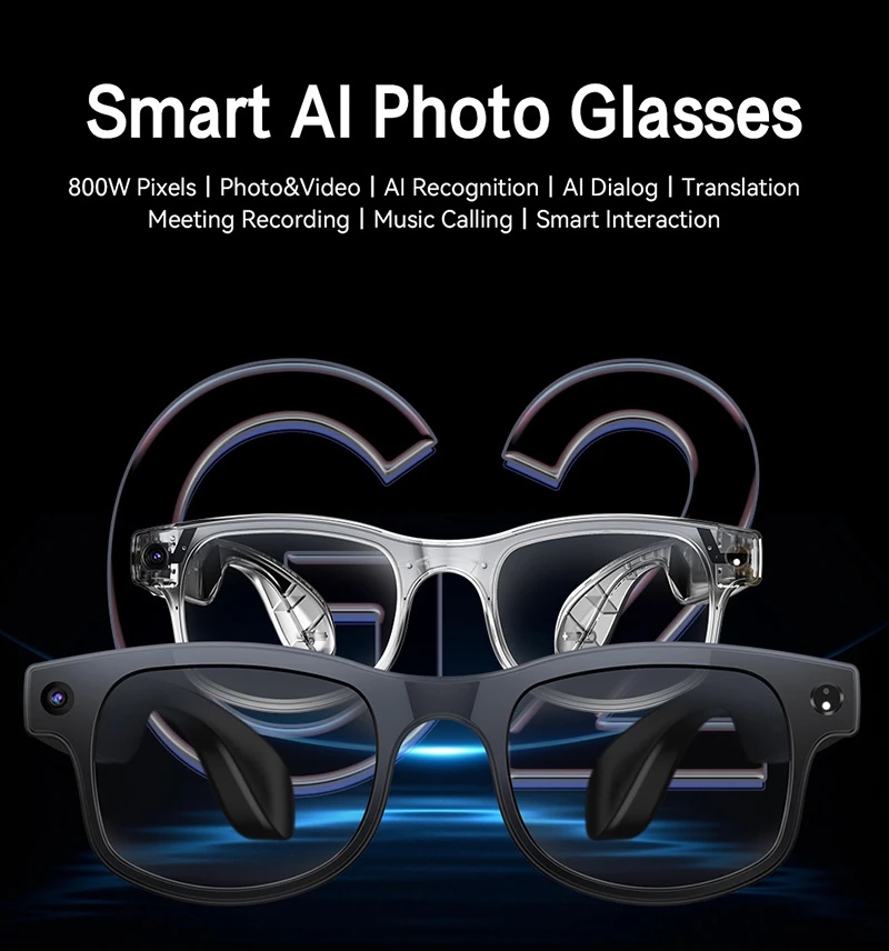 A08 Smart AI Glasses: 8-Megapixel Camera with Image Stabilization, AI Translation, Music Playback, and Bluetooth