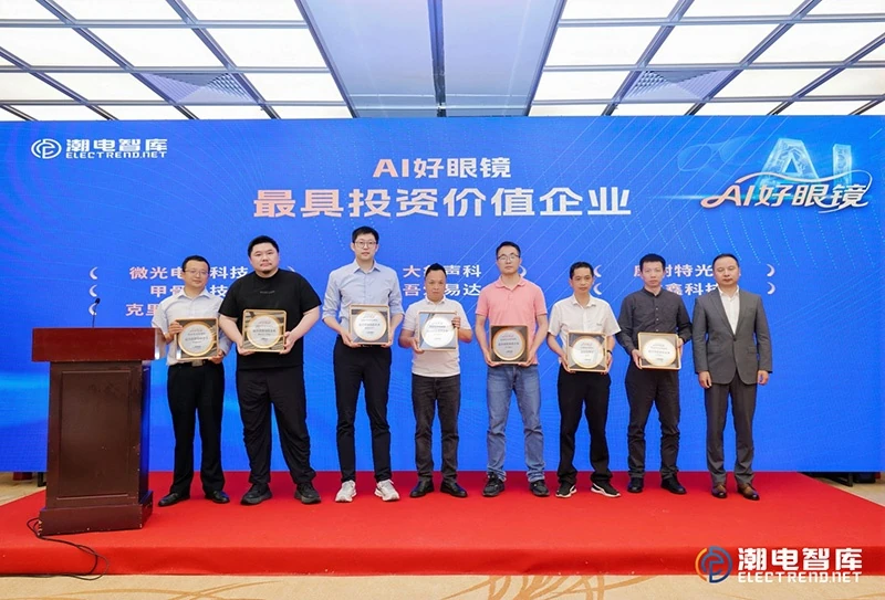 With award presenters Dong Min (Secretary-General of the China Electronics Video Industry Association) and Zheng Yi (Founder of Chaodian Think Tank) in attendance, the list of winners for the “Most Investment-Worthy AI Smart Glasses Companies” was officially announced. A total of 16 outstanding companies—Weiguang Electronics, Jiaogu Technology, Crete, Elephant Acoustics, Wuaida, Connet Optics, Yuxin Technology, Kangtaida, Duko New Materials, Haisi, Daotong Technology, Zhongke Ronghe, Gudong Intelligence, Guangna Siwei, Li Weike, and Jiuhou Technology—received this honor.