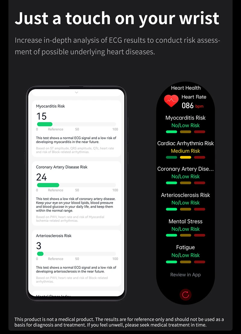 F700 Smartwatch with Blood Pressure Monitoring, ECG, Health Check, Sleep Tracking, Stress Monitoring, SOS Fall Detection, and Fitness Tracking