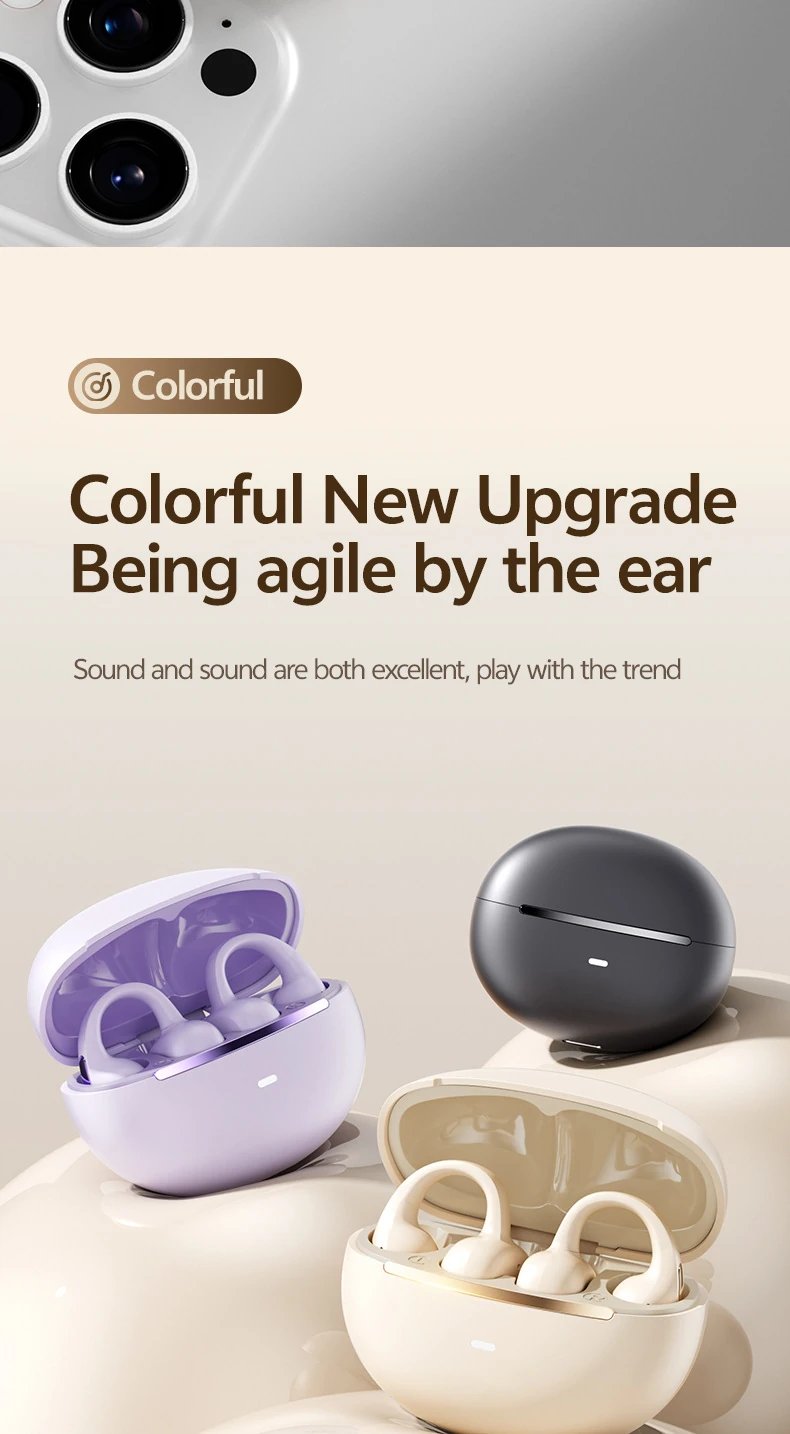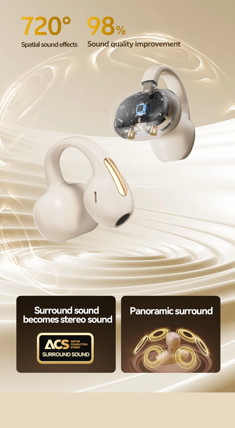 BS02 Clip-on Bluetooth Headphones: Bone Conduction, In-Ear-Free, High-Quality Sound, Noise Cancellation, Ultra-Long Battery Life