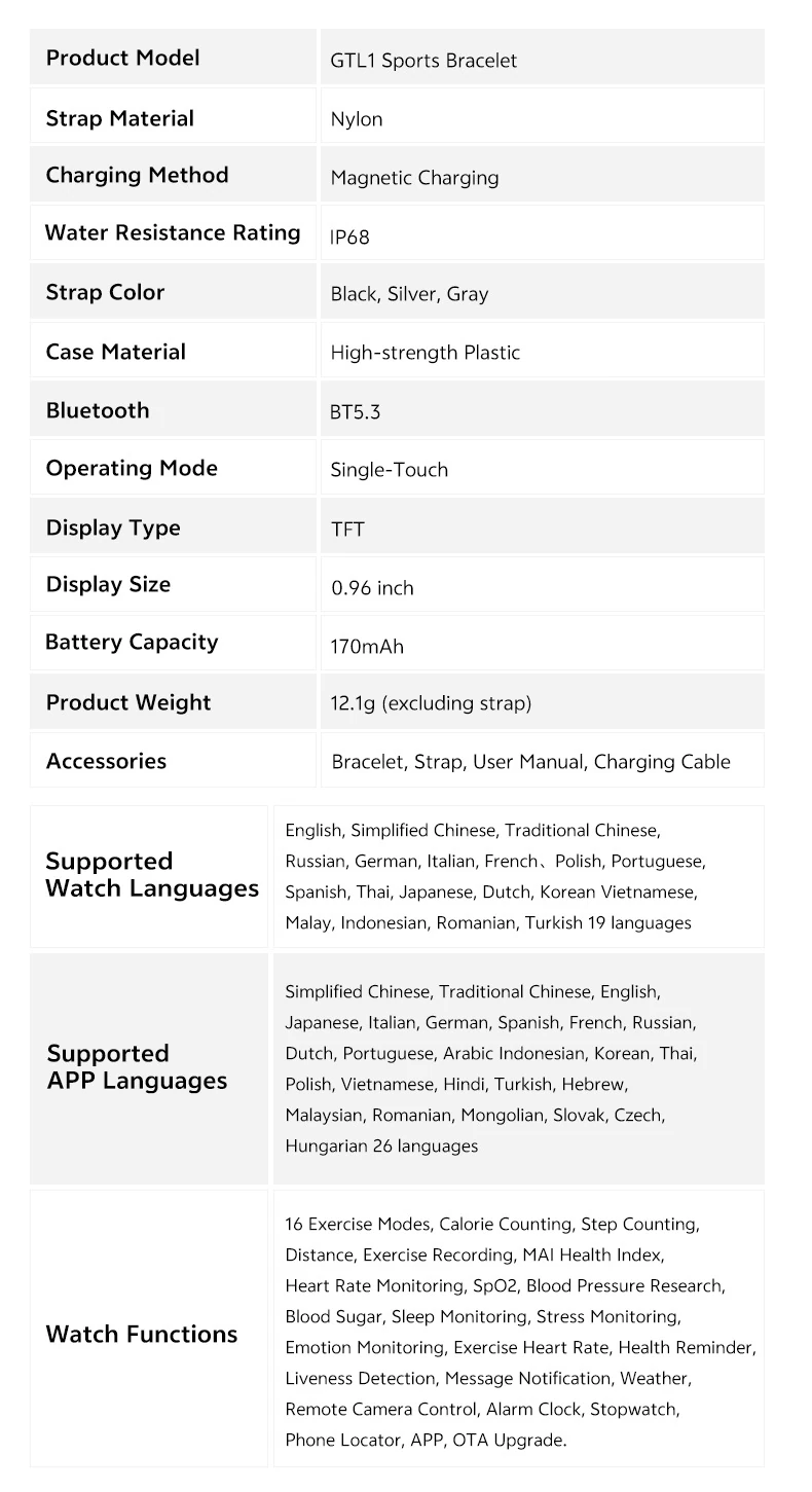 GTL1 Smart Fitness Tracker Bracelet Sport Watch Smart Watch