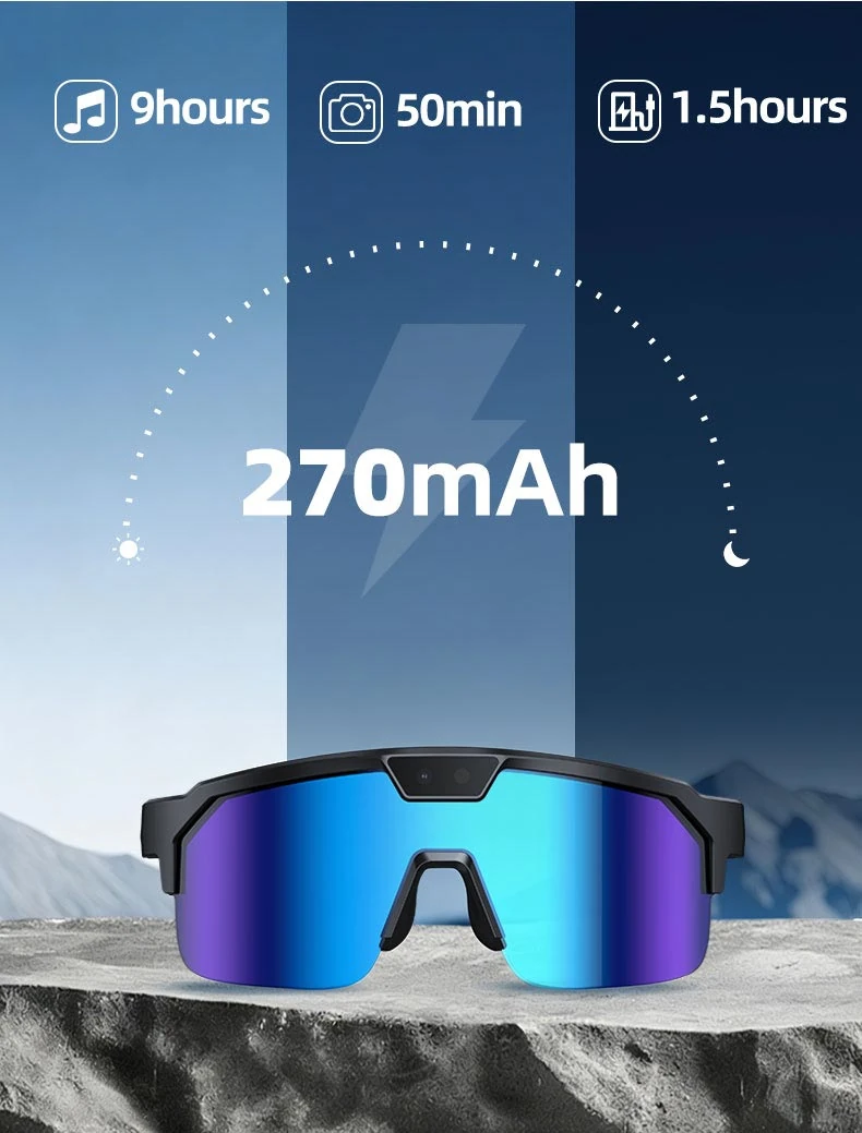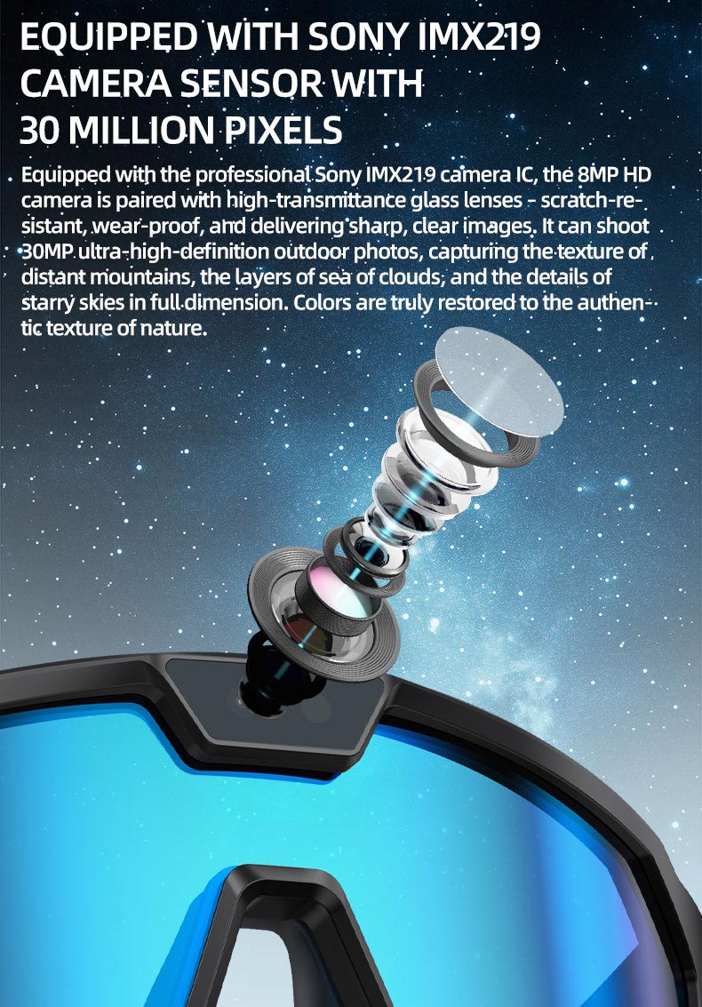Outdoor Cycling Sunglasses with 8-Megapixel Camera, Smart Translation, Wi-Fi Transfer, and Image Recognition