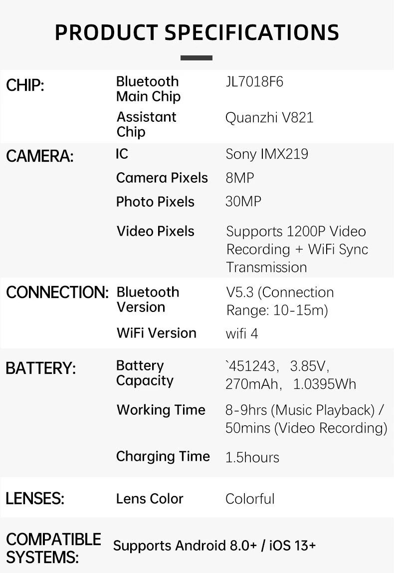 New M02 Ultra Smart Glasses: Cutting-edge technology, 8-megapixel camera, charging case, Wi-Fi, image recognition, and translation